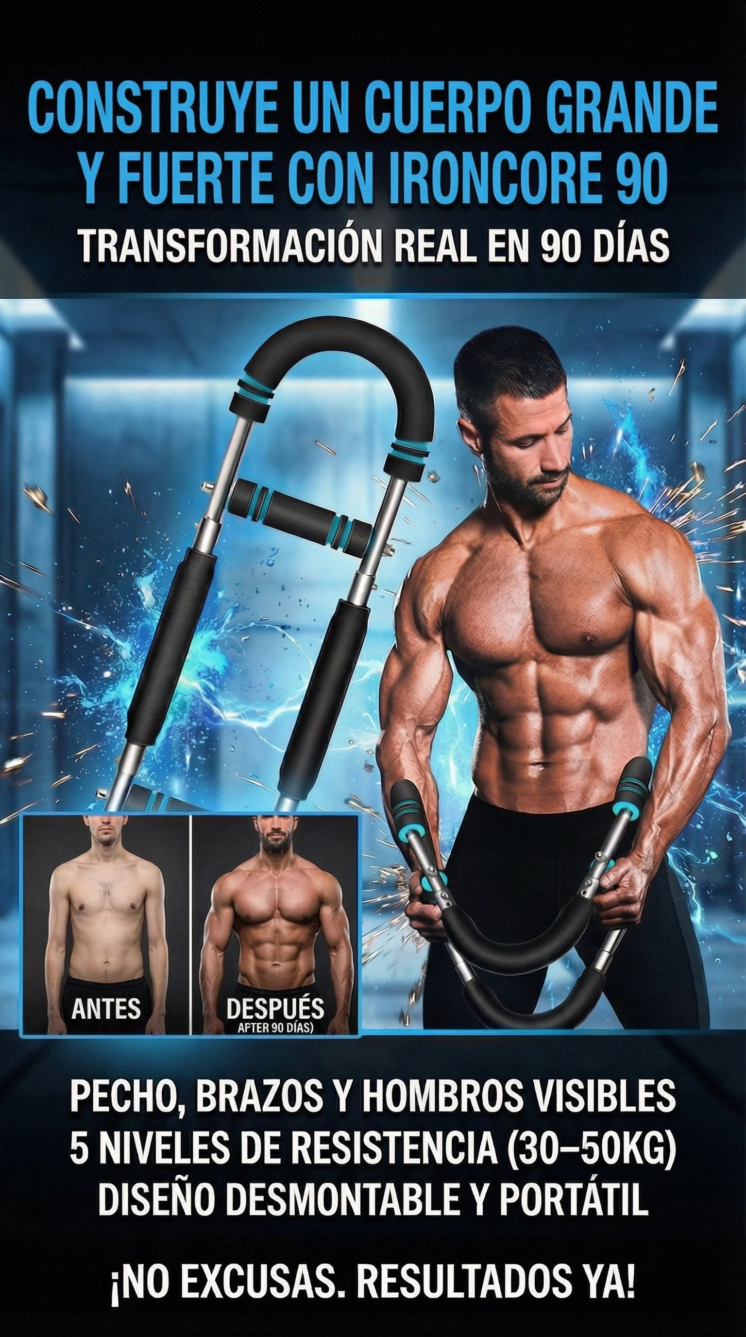 IRONCORE 90 elimina la excusa del gimnasio, del tiempo y del equipo costoso.