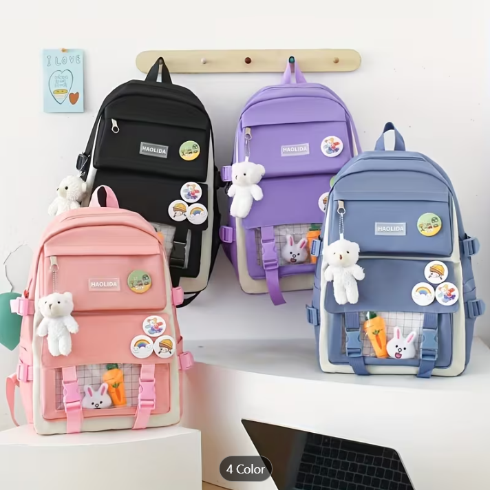 ✅ Cada cosa tiene su espacio: mochila, bolso, cosmetiquera y cartuchera.