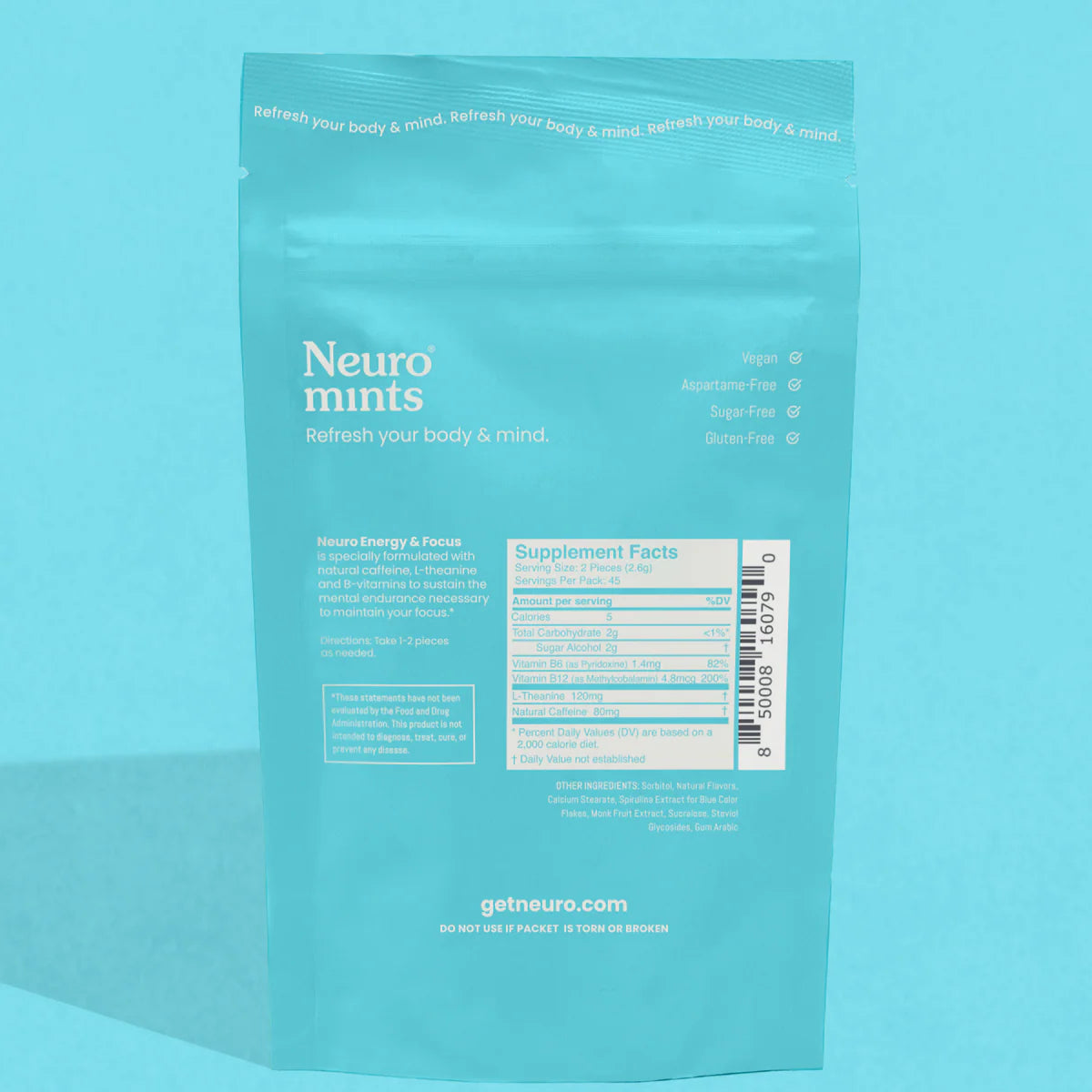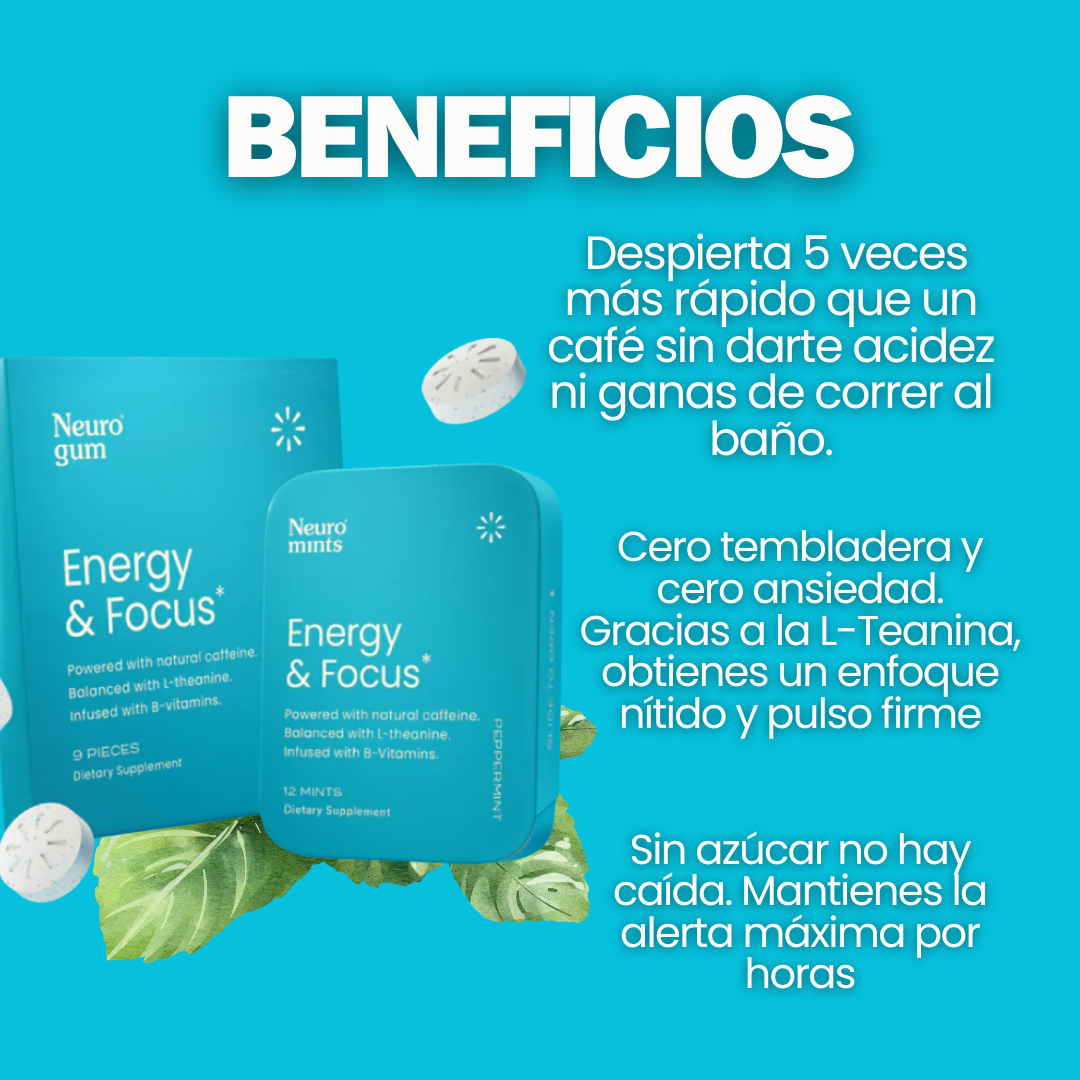 Inspirado en la tecnología de absorción sublingual de EE. UU., NEO-FOCUS utiliza una mezcla patentada de Cafeína, L-Teanina y Vitaminas B.