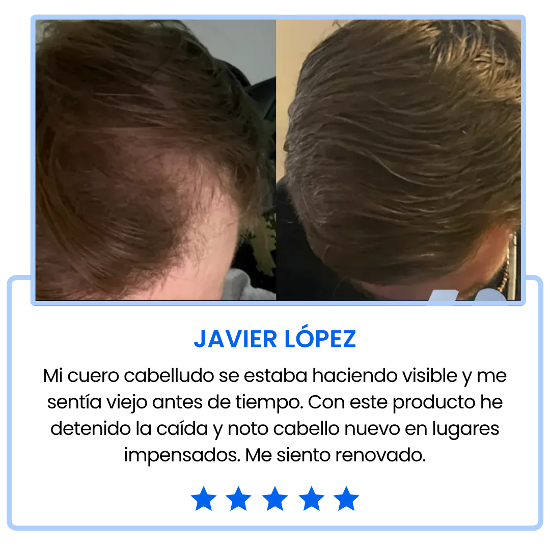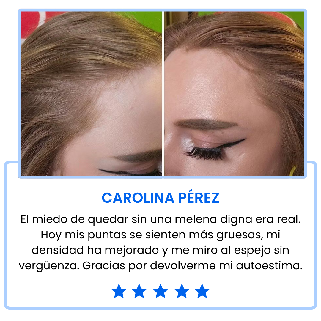 Nuestros clientes reportan menos caída, más crecimiento en zonas debilitadas y mayor densidad capilar. Recomendado para hombres y mujeres.