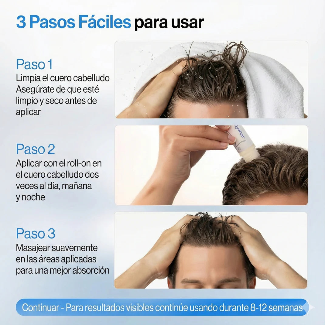Aplicador Roll-On fácil de usar, ideal para zonas con caída o adelgazamiento.